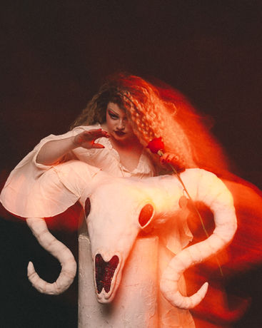 The fourth installation of the Creative Collab series brings the first of the Zodiac signs: Aries. As the first, Aries is a cardinal sign, which means associating her with starting new ventures and initiatives; a fire sign with a passionate nature. The artist - an Aries themselves - wanted the collab to revolve around the ram, the symbolic representation of Aries, reflecting their bold and headstrong nature. Aries is also a fire sign. Instead of using literal fire, the photographer used practical streaks of light to radiate flame-like energy off the model. The ram skull headpiece was handmade by Jess And, who is also seen in the image. See more @mcpphoto.png on Instagram or at MCPPHOTO.com