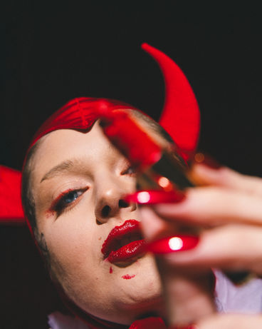 As an Aquarius themselves, the artist felt it right to celebrate their individuality and creativity through this second installment of the Creative Collab series - very aquarian of them… Aquarians often challenge norms and can be seen as contrarian, and their desire for independence and variety can lead to erratic vibes. An explosion of this devilish and vibrant red evokes danger and power. With chewed-up cosmetics and distorted features, it’s embracing the beauty in the ugly, and warping the artist's own view of themselves. See more @mcpphoto.png on Instagram.